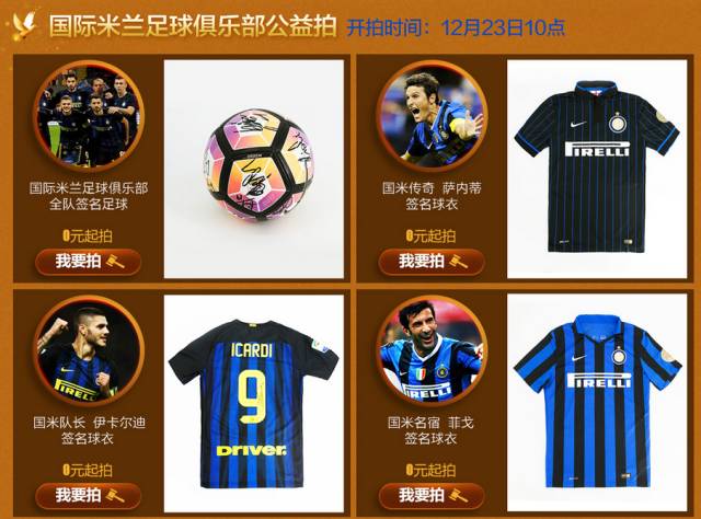 此次公益拍卖的义卖品中不仅有国际米兰、江苏苏宁的集体签名足球,还有来自众多球星、明星的珍藏私人物品。特谢拉、拉米雷斯、吴曦等苏宁球星贡献了自己征战赛场的球衣球鞋,杨洋拿出了在拍摄笑倾城宣传片时使用的折扇,邓超提供了拍摄广告时穿过的戏服……值得一提的是,所有明星拍品均为0元起拍,这也让拍卖当天的成交情况充满悬念。