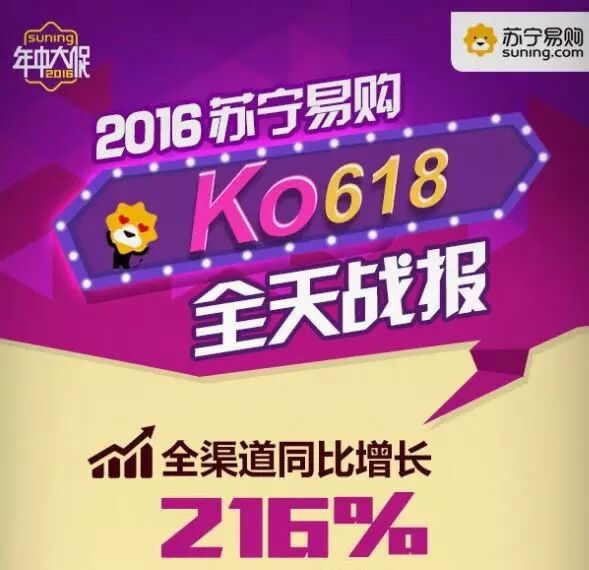 在刚刚过去的“K.O 618年中大促”当天,苏宁云商线上线下全渠道销售同比大增216%。尤其是空调品类线上同比增长284%,苏宁易购天猫旗舰店销量环比暴涨1538.7%。