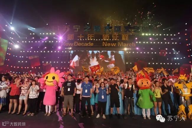 ↑从内部员工参与,到社会各界合作伙伴与嘉宾加入,再到外籍员工的加入、董事长的亲情演出,由内到外、由下至上的背后展示的是苏宁发展成就、精神理念和苏宁人风采。