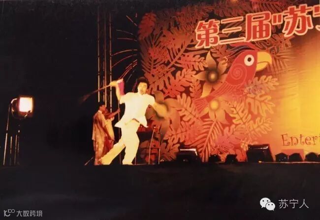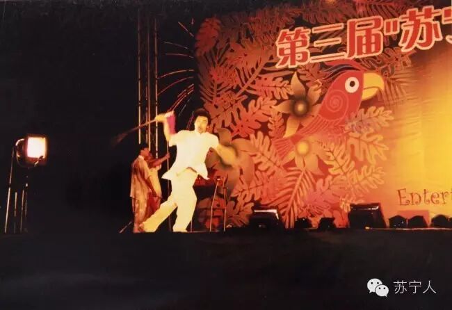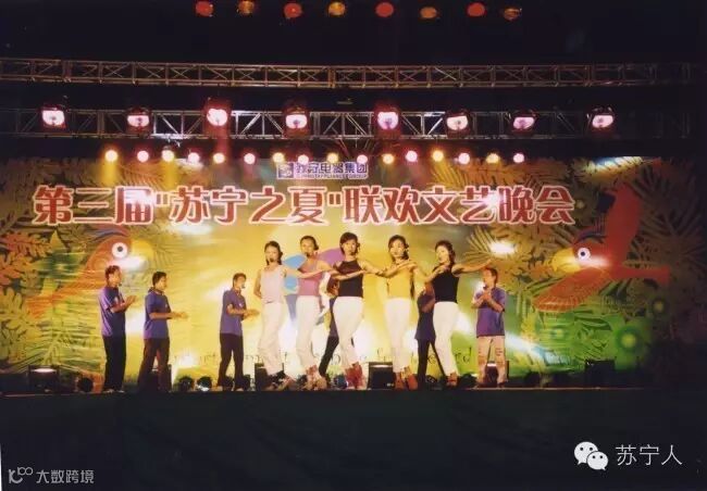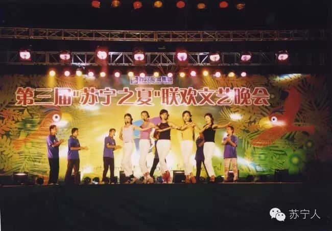 2003年第三届苏宁之夏员工在台上边唱边跳,身姿曼妙,歌声悠扬