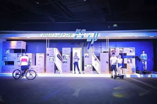 现场布置充满现代科技感和青春运动风~看智能跑鞋、智能羽毛球拍、智能跑步机、智能手表,甚至还有智能钓鱼漂!!!