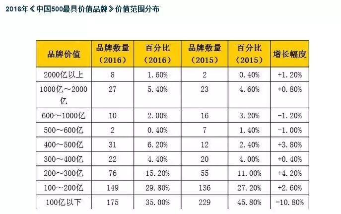 2013年以后的2016年,入选门槛已经提高到22.65亿元,而前500名品牌的平均价值高达265.39亿元,增加幅度为436.90%。