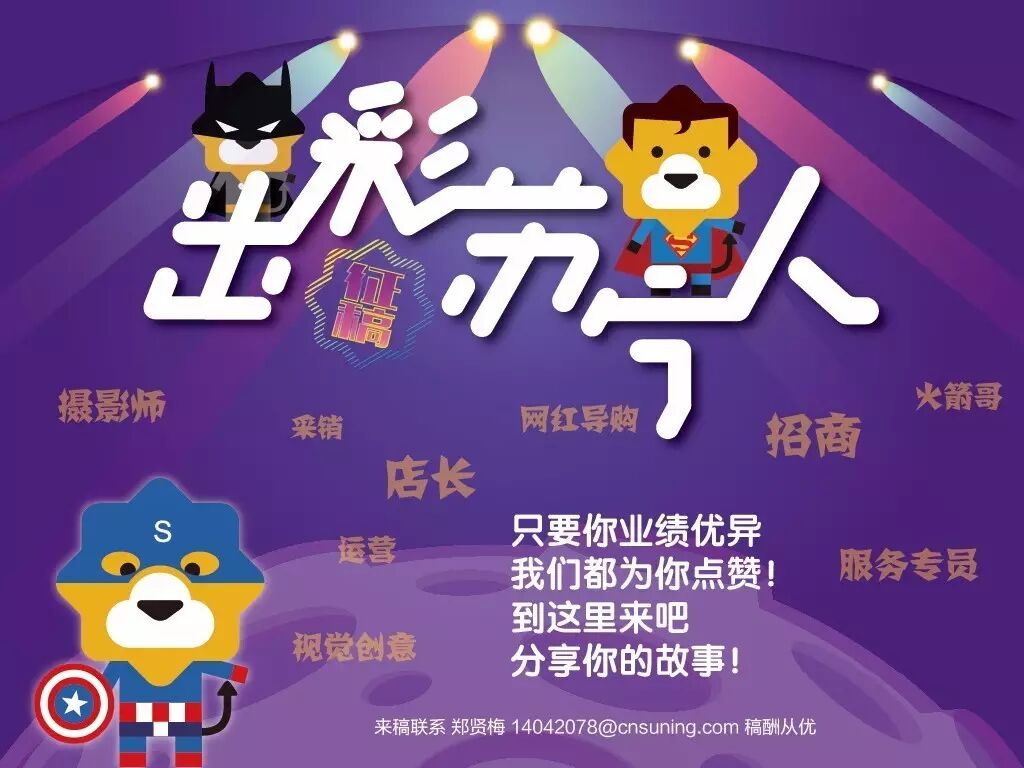 来稿联系企业文化部郑贤梅,电话:881475;18551602278,邮箱14042078@cnsuning.com。