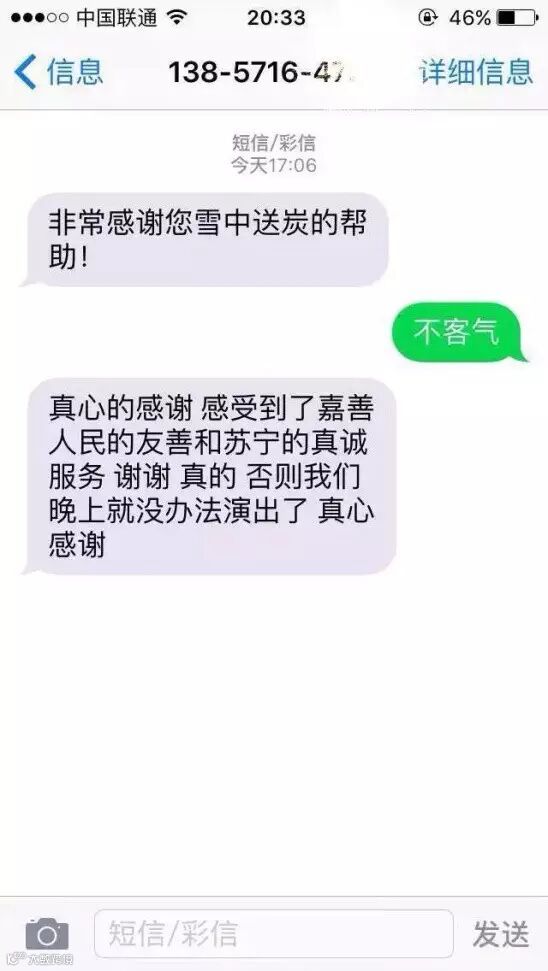 顾客发来的感谢短信☟