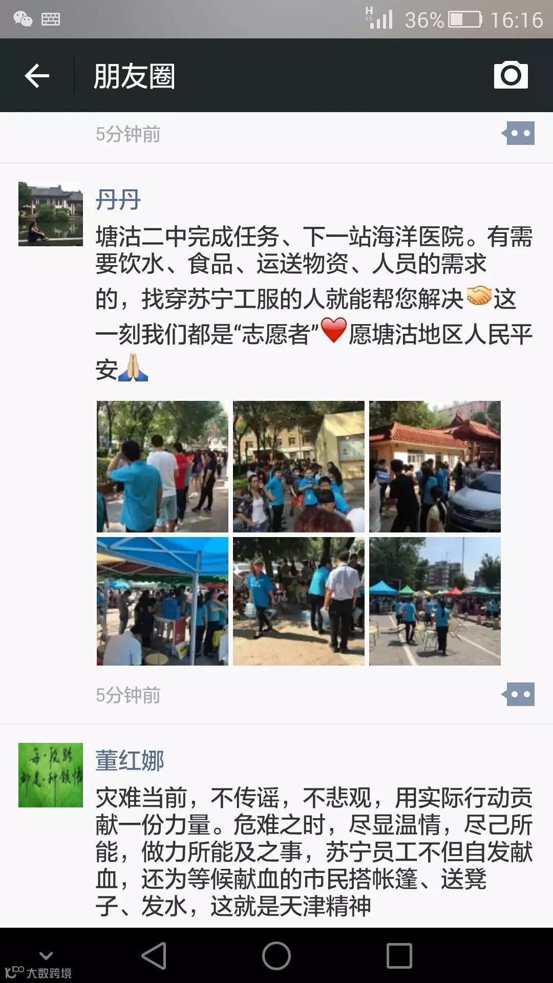 危难之时,尽显温情,尽己所能,做力所能及之事,天津苏宁员工不但自发献血,还为等候献血的市民搭帐篷、送凳子、发水。