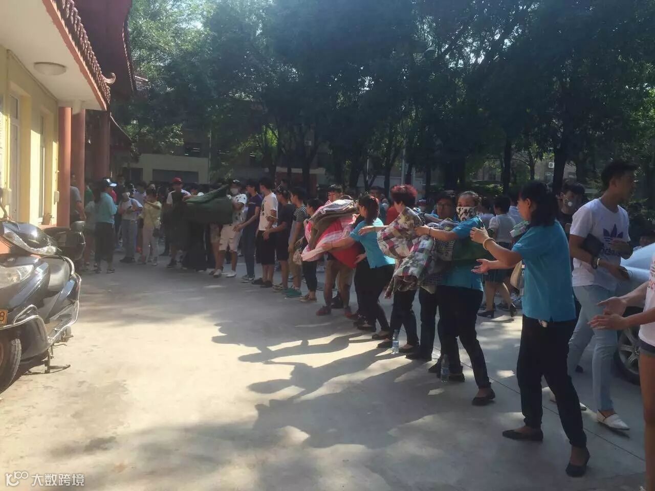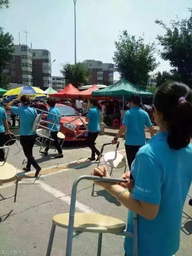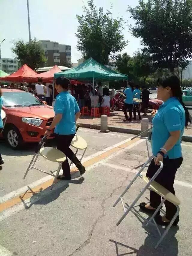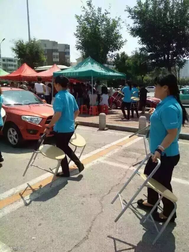 附近的店面把店里的座椅全部拿出来提供给献血、支援的群众