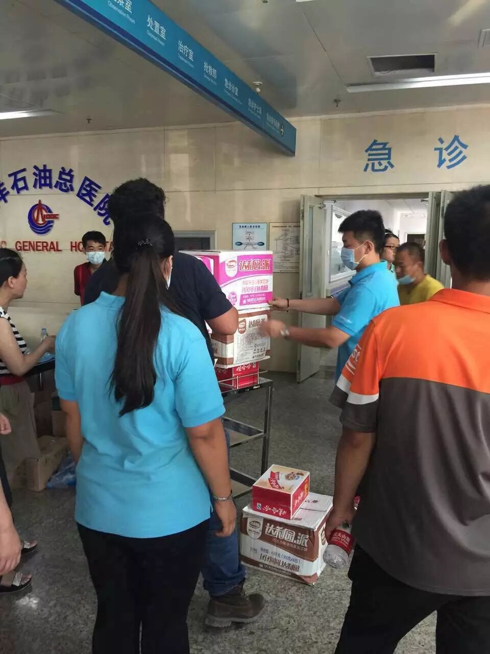 此次我司天津大区支援事故现场,就近从空港物流基地调度四辆自备车,满载矿泉水等物品驰援滨海新区事故地点,同时从塘沽店,塘沽金街店,汉沽店掉多名自营员工到现场提供义工服务,发矿泉水,帮忙运送伤员,做力所能及的事。
