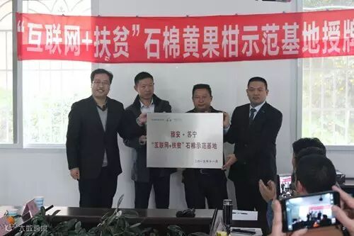 为了帮助当地发展经济,推广当地优质农产品,11月26日,集团联合中国扶贫基金会在四川省雅安市石棉县宰羊乡坪阳村举行了苏宁·雅安“互联网+扶贫”石棉示范基地授牌活动,标志着集团在川内的首家“互联网+扶贫”项目正式落地。接下来,集团将在品控管理、组织建设、市场渠道链接等多方面为石棉县2000余亩黄果柑果园提供资金、技术和平台的系统扶持。