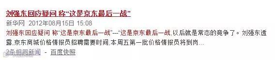 “这是京东最后一战,以后就是常态的竞争了。”2012年8月15日10时,刘强东如约出现在媒体面前,回答了人们对此次价格战的种种疑问。