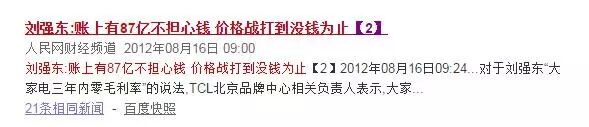 早在2012年,刘强东就说过,“我账上现在有87亿人民币,从不担心钱的事情,不管需要多少钱,总会有股东给。如果真的需要,价格战将打到钱花光为止。”