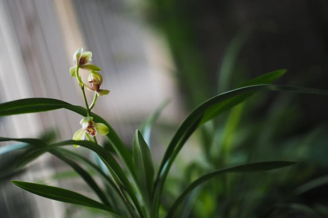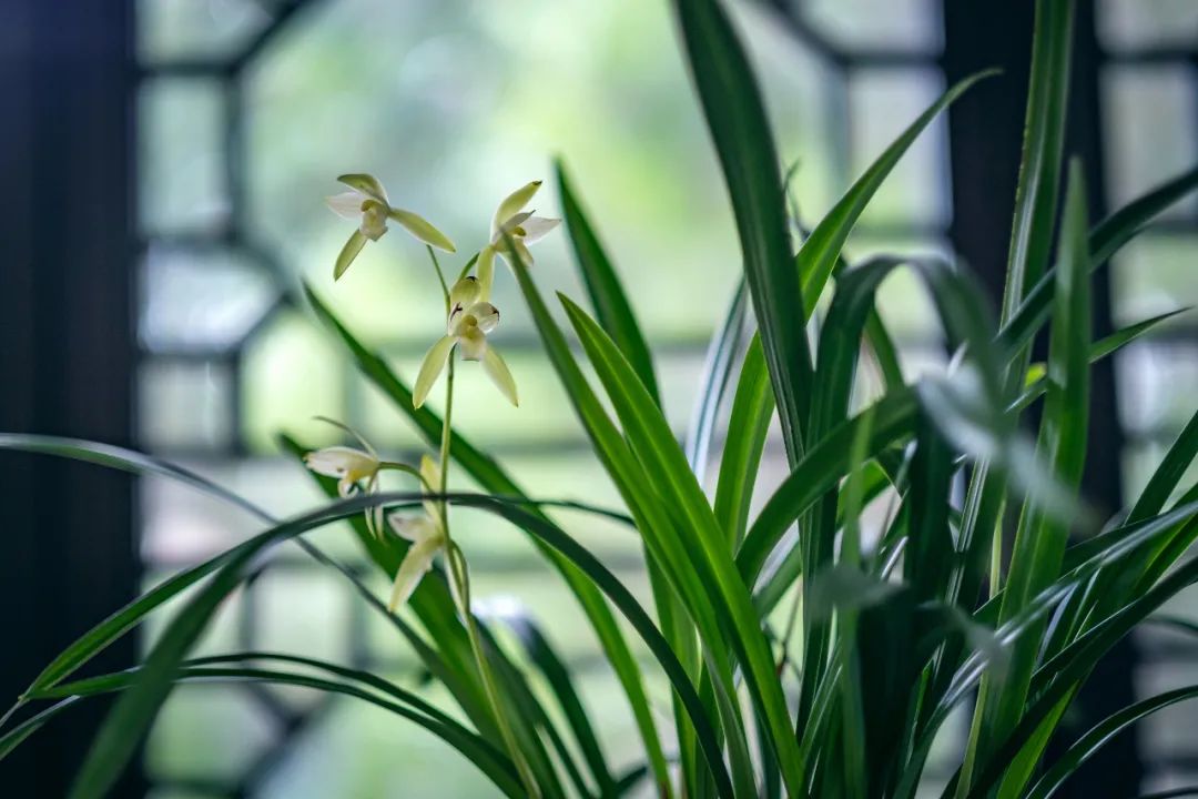 坐在窗边,看着兰叶轻飘,