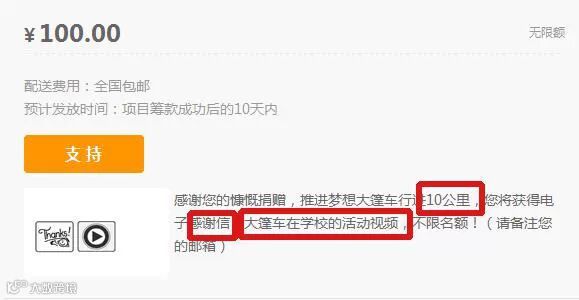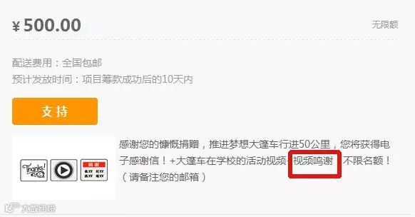 果然一百块,不但能收到感谢信,还能收到活动视频。请记住,你的一百块不是打水漂玩儿了,是真的帮助了孩子们实现自己的梦想!(瞬间觉得自己的十顿煎饼果子不吃也是有点意义的)