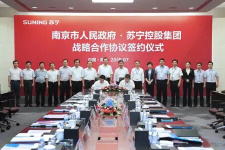 7月28日下午,南京市市长缪瑞林一行到访我司徐庄总部,并就我司在南京下一步的发展建设规划签署战略合作框架协议。缪市长表示:“苏宁能在全国民营百强榜单上长期保持榜首位置很不容易,市委市政府也将以苏宁为标杆、为旗舰进一步来带动南京的创新性经济发展。”