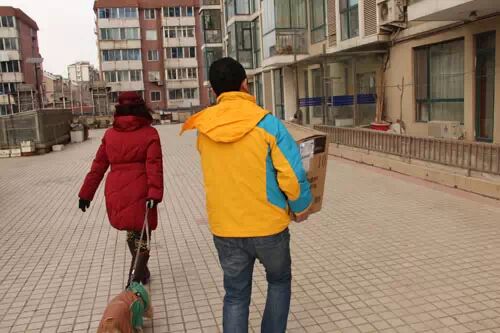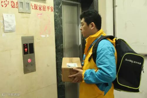 顾客住在11楼可是阿姨的电梯卡只能坐到9楼,还剩两层没关系,我们走上去,可惜顾客真的不在家,下楼时好心阿姨还为我们留了电梯,为了感谢阿姨,贾总再次送上小礼物。感觉今天的“快递员”好像圣诞老人哦,到处送礼物可还行