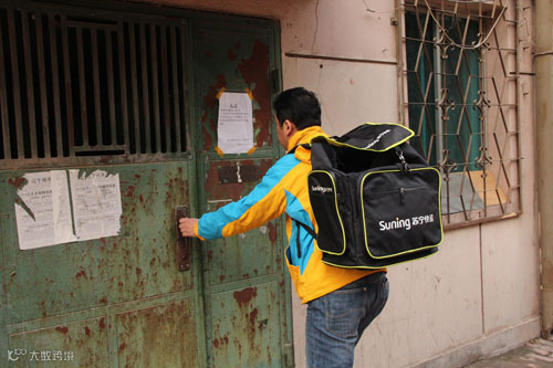 下面的一位顾客电话关机,但为了保证送货的及时性“快递员”还是决定前往顾客家试一试,家总说,也许人家电话不在身边呢,还是去看看吧。