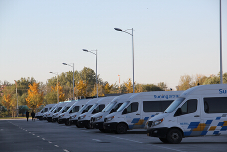苏宁始终坚持自建物流,现在“物流云”项目即将建成,其中包括了12个自动化分拣中心、60个区域物流中心、300个城市分拨中心,以及5000个社区配送站,构建了苏宁物流的毛细网络,覆盖了全国90%左右的区(县)和三分之二以上的乡镇。以苏宁物流的省内干线的建设,按照其发展规划也叫连片开发,就是在一条路线上开发,进行沿途配送。拿甘肃举例,兰州到武威、张掖、酒泉是一条线,原来都是从兰州出发进行点对点的配送,只能实现隔日送。而干线开发完成后,比如说18点截单,截单后就把武威、张掖和九泉的货在23点左右全部装车,货车连夜出发,第二天上午,武威、张掖的消费者就能看到快递员上门送货了。