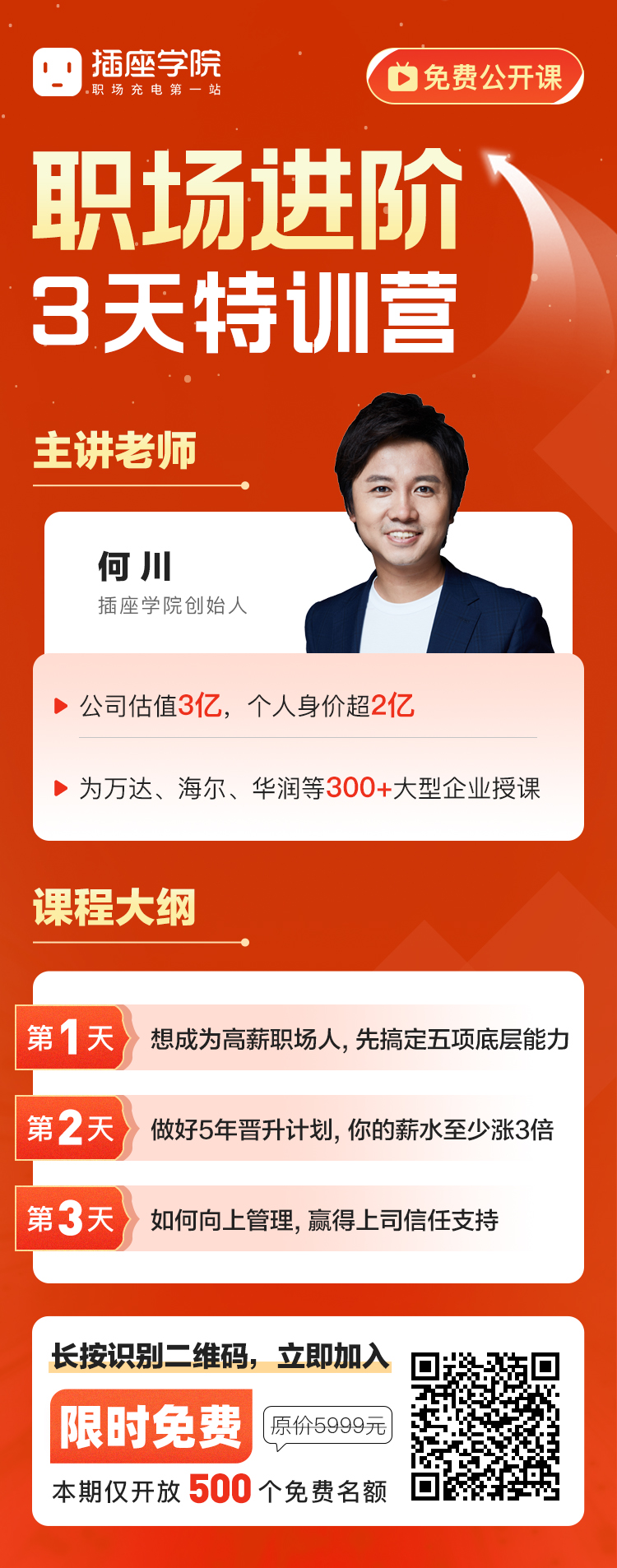 为了帮更多人突破瓶颈,我决定将我价值 5999元 的线下课精华内容,浓缩为3场特训营(540分钟免费特训营)。不用谢,要谢就谢你突破现状的决心。