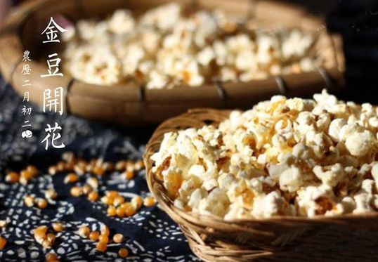 爆开了的玉米花,形如金豆,向玉帝祈祷。
