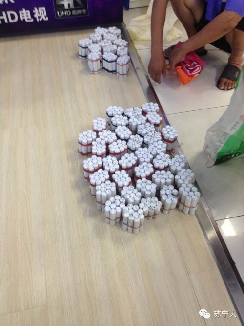 好吧好吧,不卖关子了,小编深入终端,启动了一级线人警报,了解到事情的全过程。8月3日蕴川路店的黑电柜组迎来了一位特殊的顾客。一位身着朴素的中年男子在三星厅房左顾右盼,营业员小宋热情地接待了该名顾客。交流中得知该名顾客生活艰苦,平日靠烧开水为生(应当事人要求,没有正脸照片哦),日积月累攒了4000多块钱的硬币(都是1毛、5毛的,连1元大洋都没有哦),想买2台电视机。之前已经被好几家其他家电门店拒绝了,听说苏宁的服务超赞,所以抱着试一试的心态来看看。