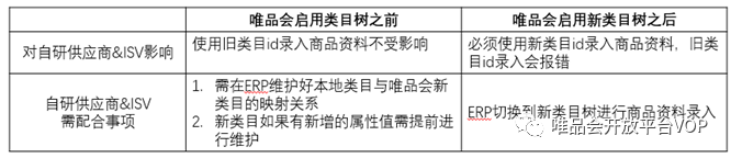 唯品会预计2月中下旬会进行类目树的调整,需要各位自研供应商&ISV配合如下: