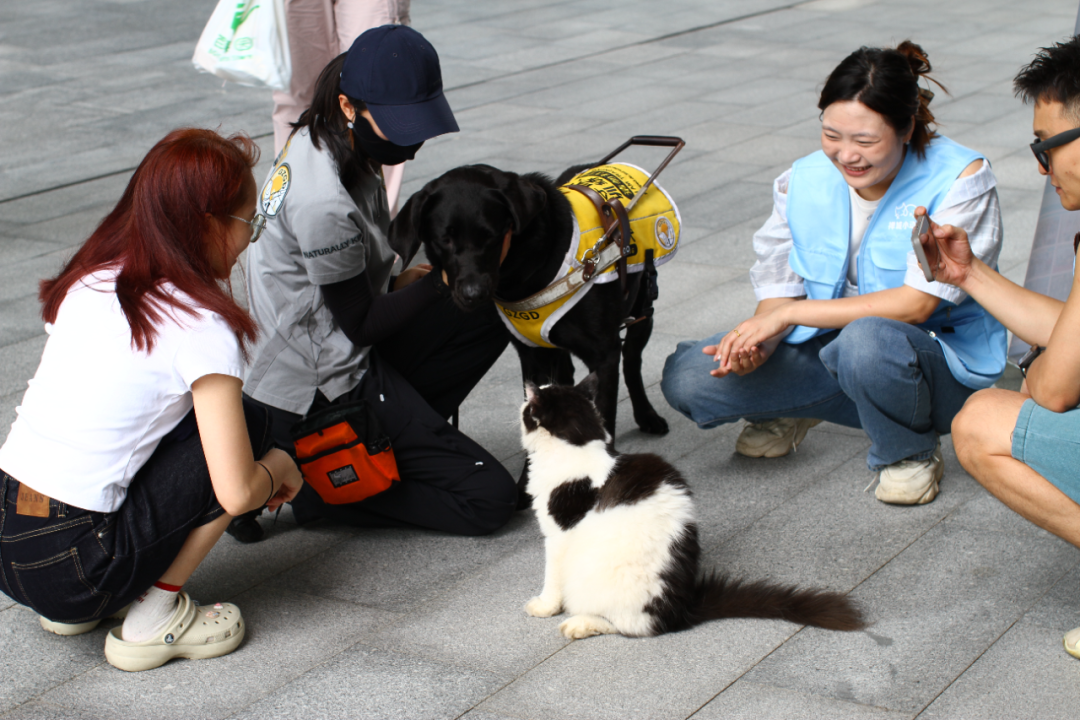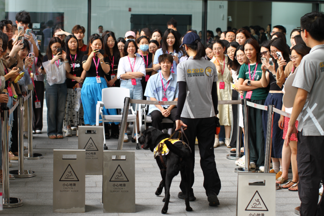 活动邀请广州导盲犬学校的伙伴们来到现场,通过介绍导盲犬的训练模式、导盲犬礼仪、模拟导盲犬带领视障人员就坐等方式,帮助员工沉浸式体验视障人群的出行日常,感受视障人群的世界。