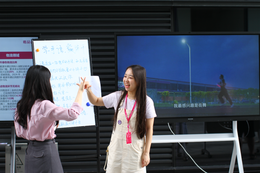 活动现场设置电子屏,展示公司使用循环箱、回收箱等资源节约措施,以及员工日常如何实现资源节约,并设置有奖竞答,答对的小伙伴即可赢得惊喜好礼,以此增加员工对ESG的理解,推动员工践行ESG理念。