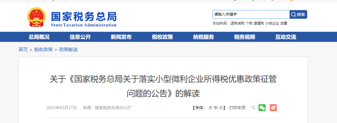 3月27号,国家税务总局及税政司连发几个重磅文件,小型微利100万以下变成5%了,目前总的来说,小型微利企业年应纳税所得额300万以下统一5%。近期,国家税务总局也公布了最新享受政策解读及更多优惠,赶紧跟着我们一起看看吧!