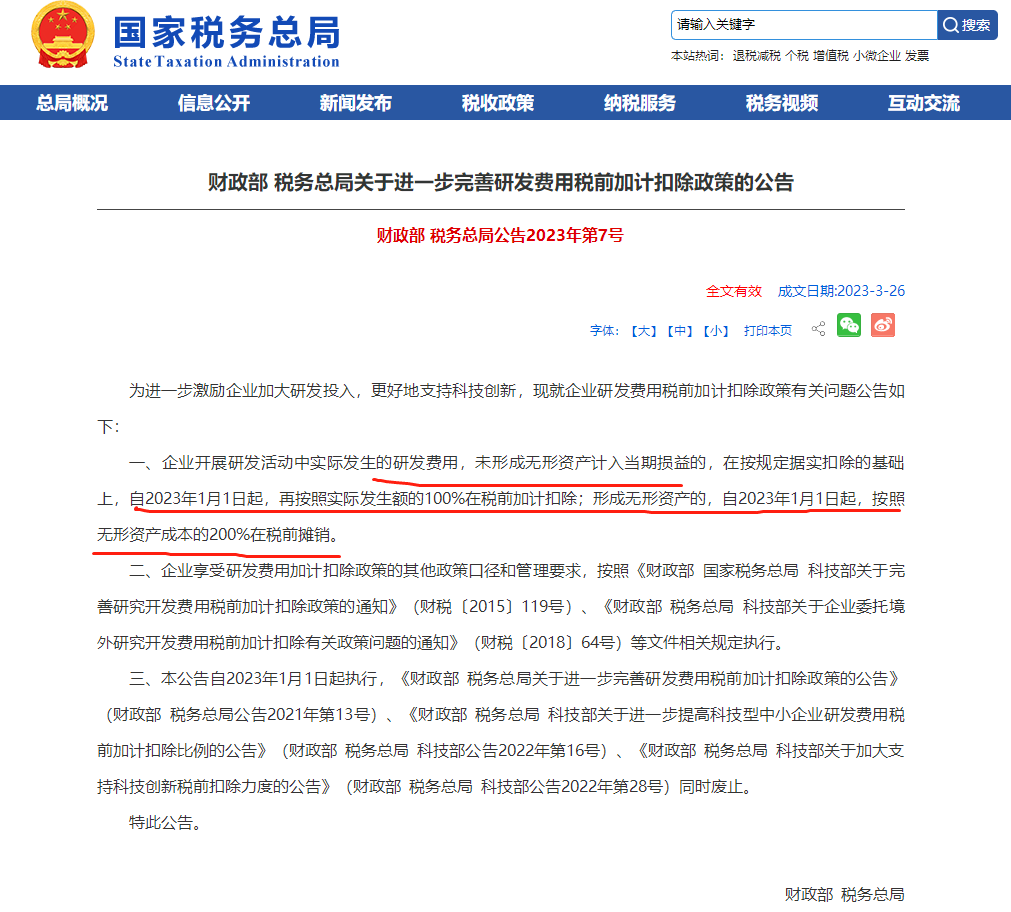 财政部 税务总局公告2023年第7号