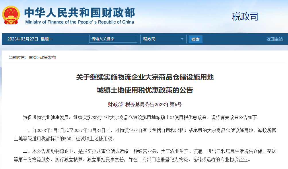 减半征收物流企业大宗商品