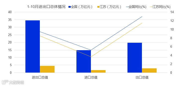 全国:前10个月,我国外贸进出口总值34.62万亿元,同比增长9.5%,外贸继续保持平稳运行。