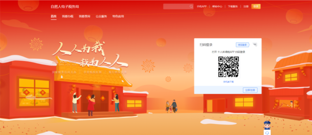 第二步:有单位办税权限的办税人员登录,进入“自然人税收管理系统(个人所得税等)”界面后,使用扫码或密码方式登录自然人电子税务局(WEB端)。