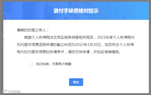 第四步:系统自动弹出“退付手续费核对提示”,勾选后【确定】。