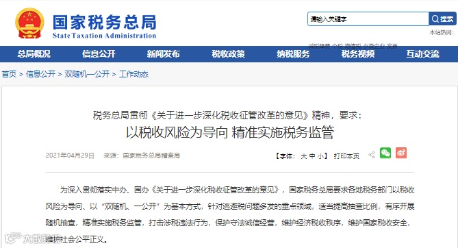 8月14日,国家税务总局发布督查公告:
