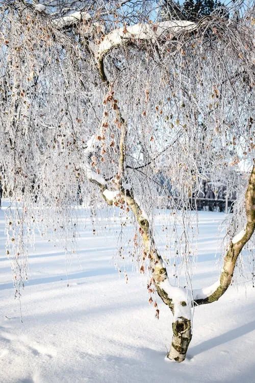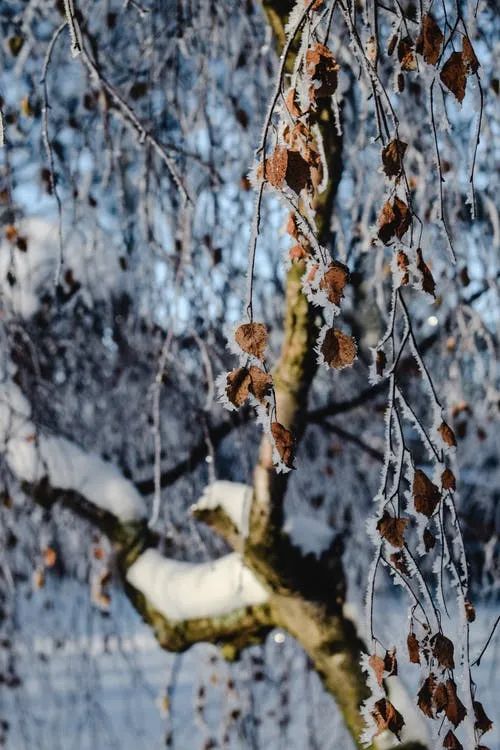 与风共舞的雪,信步掠过枝丫间,顷刻留下一树巧做天工的冰花。