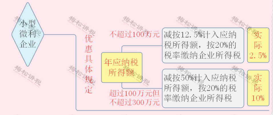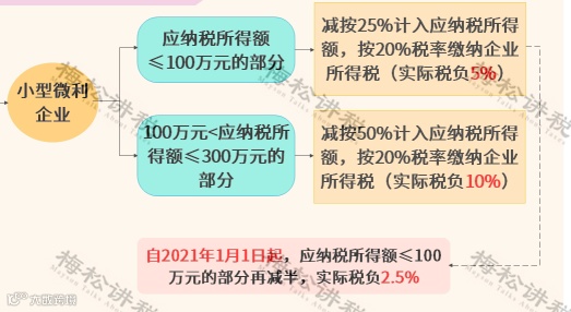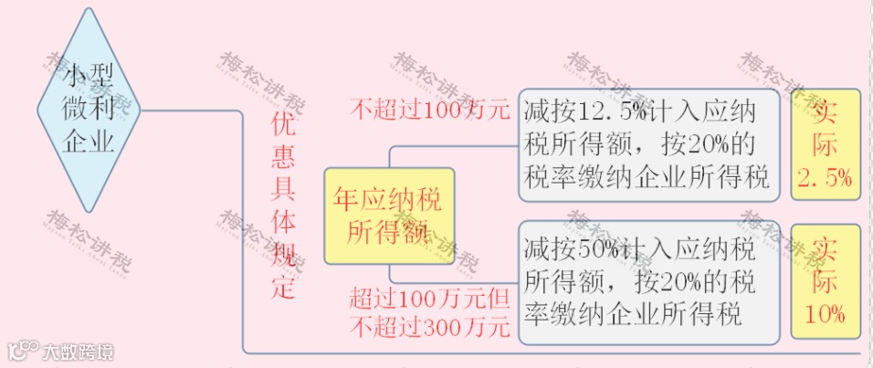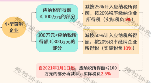 注意:此次《政府工作报告中》明确:将小型微利企业应纳税所得额100万-300万的部分,再减半征收,也就是实际税负将低至5%。