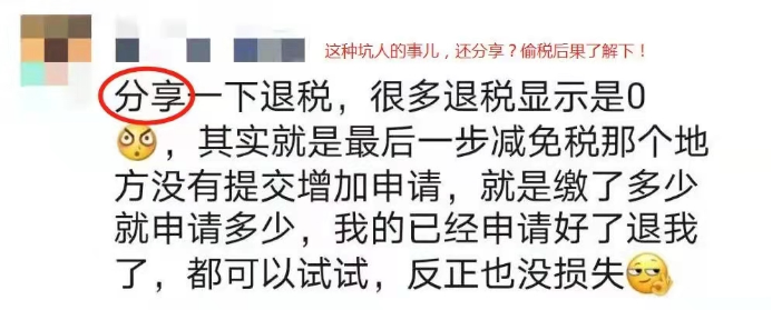 有些人自认为很聪明,自己虚假申报减免税,还得意洋洋的炫耀自己所谓的退税“秘籍”,真是害人害己!