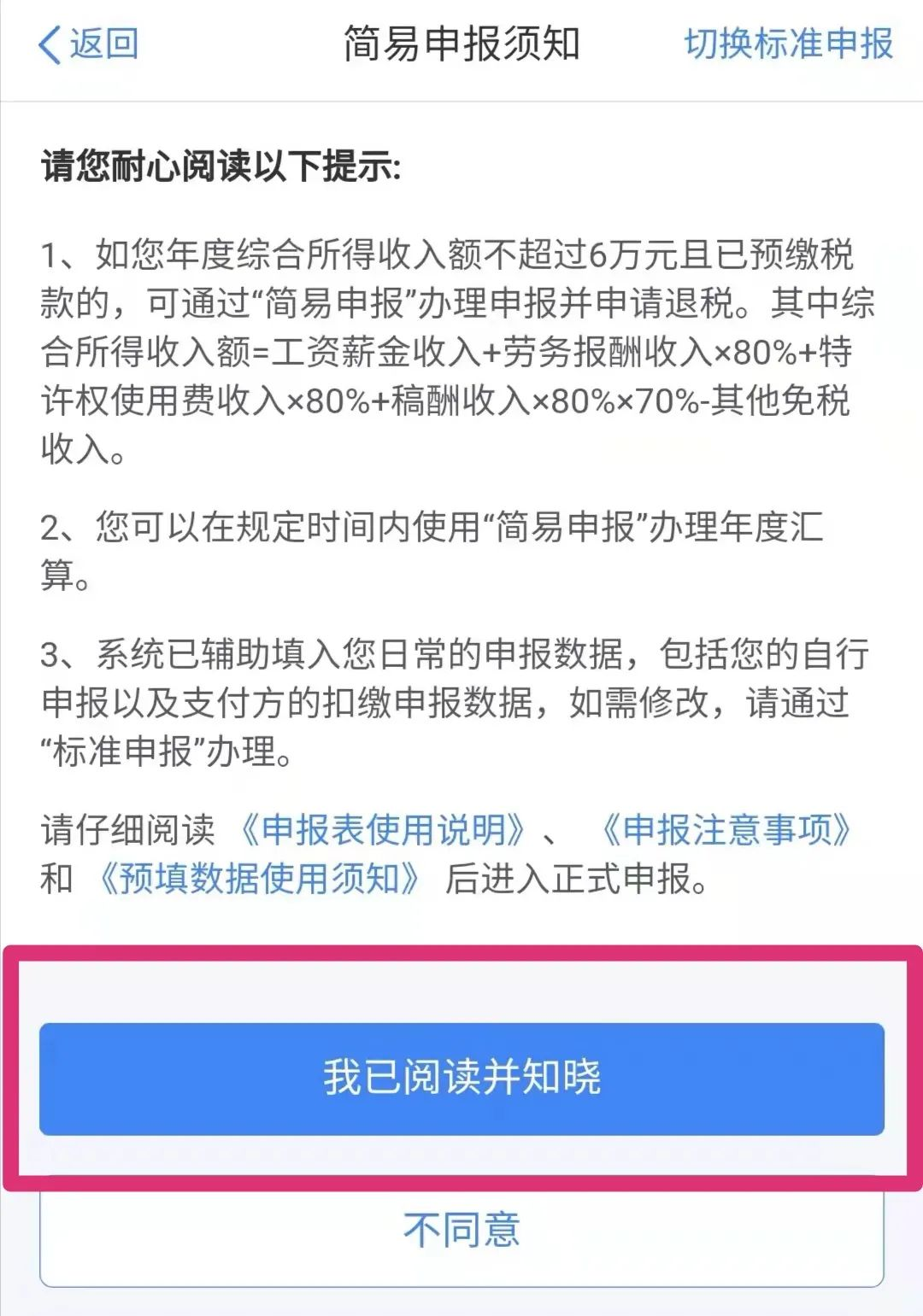 进入申报界面——选择“简易申报”——阅读并点击“我已阅读并知晓”。