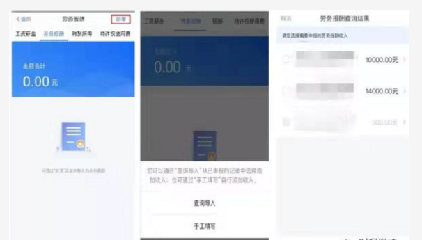 没有自动归集的劳务报酬、稿酬、特许权使用费,申报个税时,要手动新增填入:
