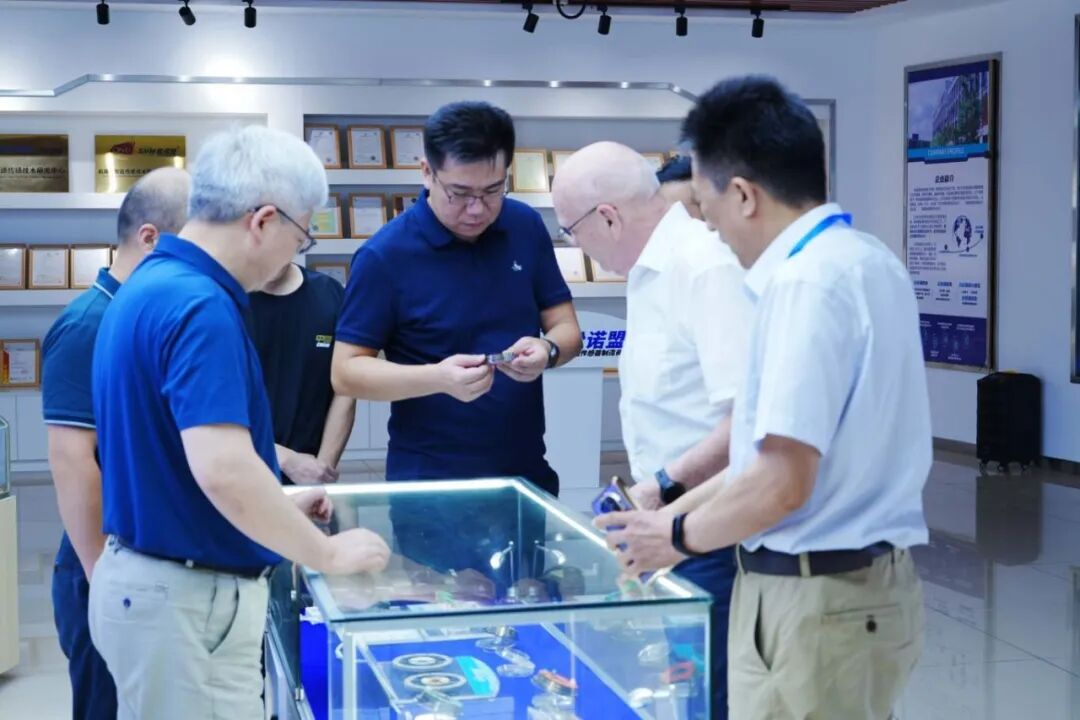 经过深入的交流,恩德斯豪斯代表团对松诺盟在高性能纳米薄膜系列传感器领域的国产化成果产生了浓厚兴趣。为进一步了解松诺盟的技术转化与制造能力,代表团一行走进公司产品展厅及现代化生产车间,近距离了解到了产品从研发到量产的关键工艺与严谨流程,对松诺盟的技术创新实力与产业化能力有了更具体、深入的认知。