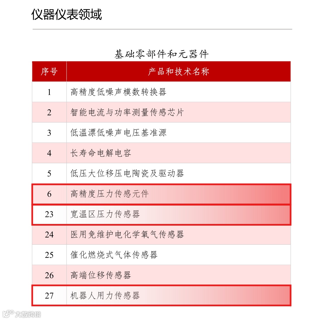 ▲ 产业“五基” ——仪器仪表领域的《基础零部件和元器件》共37项,其中涉及传感器23项,3项与松诺盟研发产品高度吻合