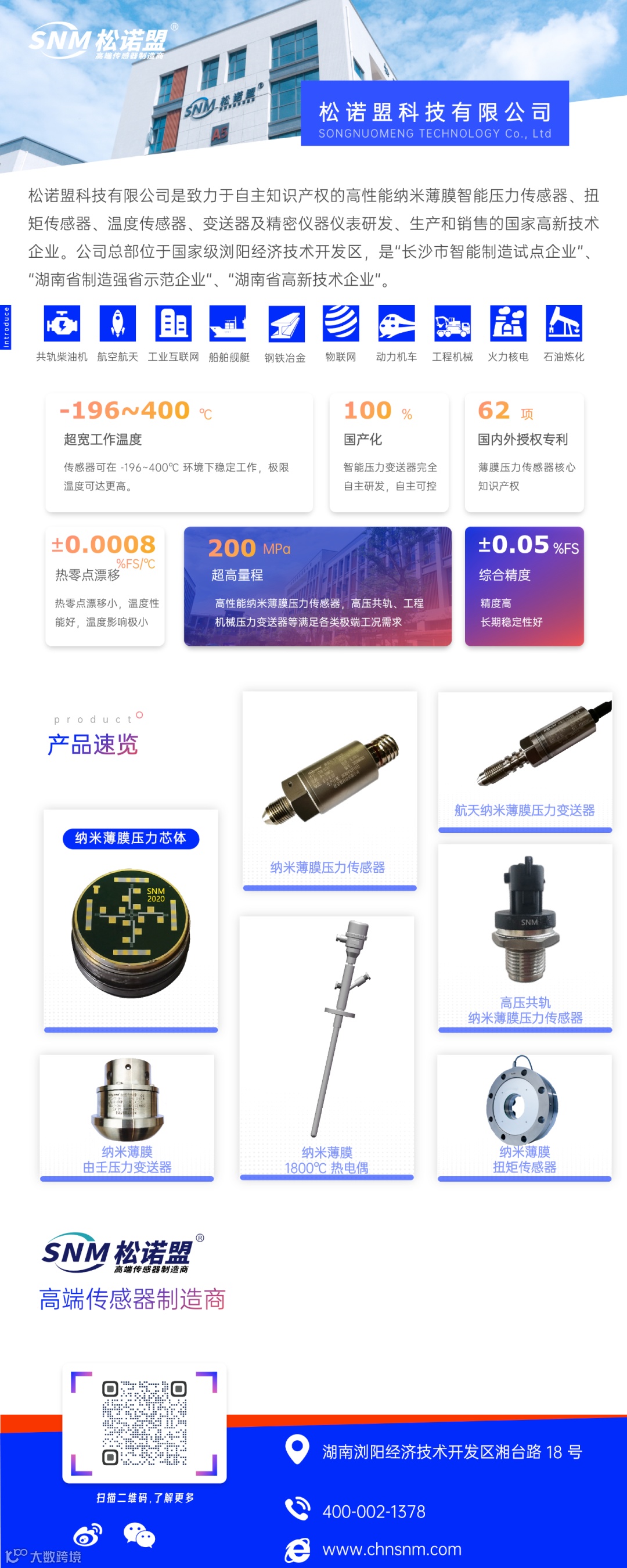 ◎ 新型敏感材料专利技术,采用国际先进的离子束溅射工艺及微机械加工技术制成。