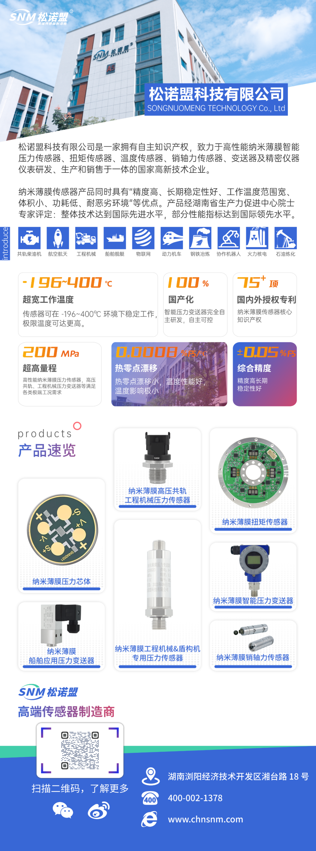交流会上,雷院长就松诺盟纳米薄膜传感器的技术特点与发展前景、纳米薄膜压力传感器产业化项目进行了介绍。殷林波巡视员充分肯定了松诺盟纳米薄膜传感器在关键材料与工艺方面取得的成绩,他鼓励松诺盟将纳米薄膜传感器打造成我国关键核心元器件,在我省工程机械、先进轨道交通装备、航空动力等三大世界级产业集群等方面发挥积极作用,实现高性能传感器的国产替代。同时表示,省工信厅大力支持像松诺盟这样的“高精尖”技术企业发展壮大,可在政策、平台与资源共享等方面给予多方对接,促进企业的快速成长,共同推动产业创新和制造业高质量发展。