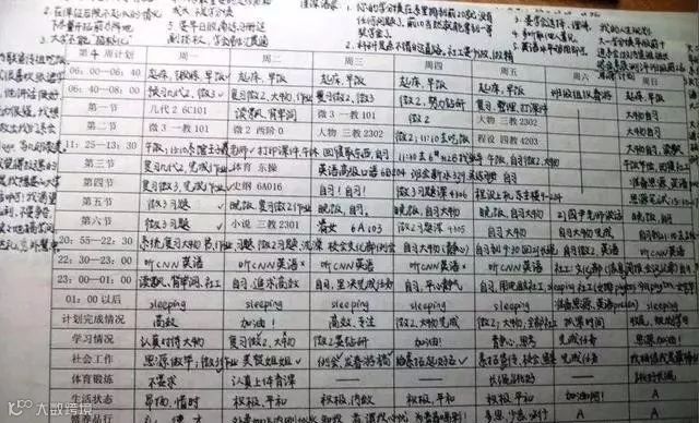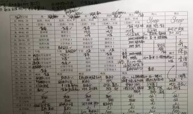 每个时间段的学习都被精确到几点几分,可谓是分秒必争。