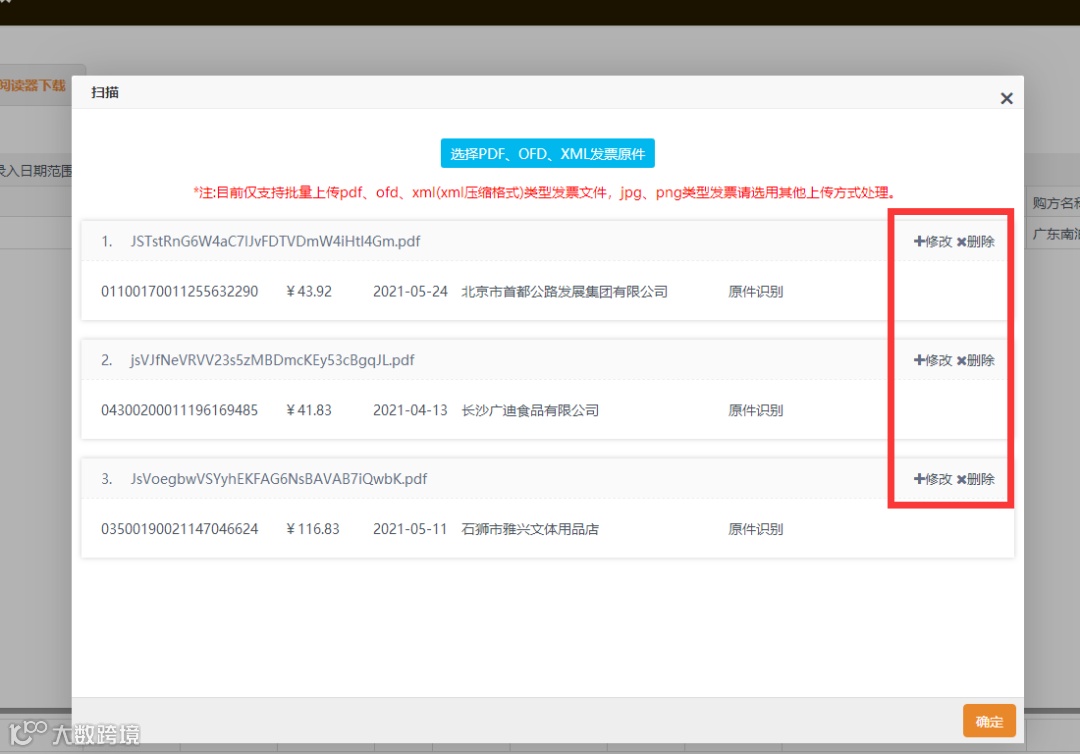 员工批量上传的发票,之前是不能进行修改的,此次我们新增了批量上传后修改功能。员工在小程序或电脑端批量上传发票后,可点击每张发票,进行修改或删除后保存提交。