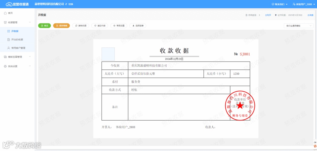 支持网页端、移动端及批量导入生成电子收据,内置海量行业模板,满足物业、零售、服务等多场景需求。企业还可定制专属模板,强化品牌形象,提升客户信任度。