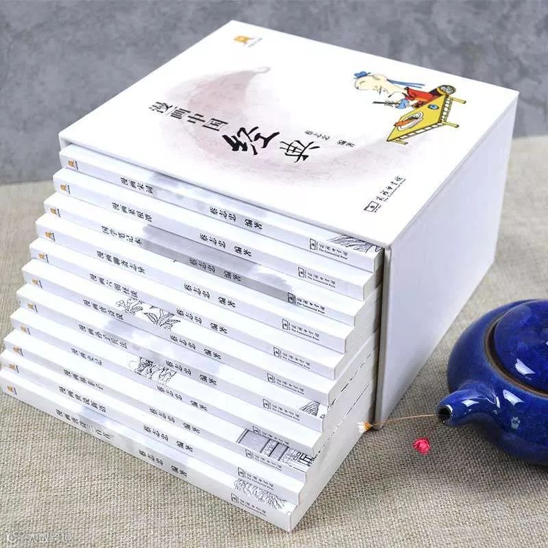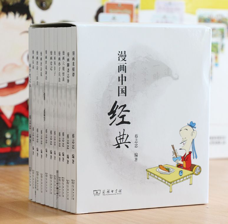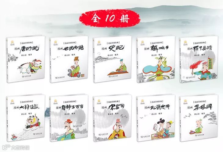一共十本,包含有《漫画孙子兵法》、《漫画韩非子》、《漫画史记》、《漫画世说新语》、《漫画菜根谭》、《漫画唐诗说》、《漫画唐诗三百首》、《漫画宋词》、《漫画六朝怪谈》、《漫画聊斋志异》。中国人一生必读,而且可以读很长时间,绝对是经典中的经典。