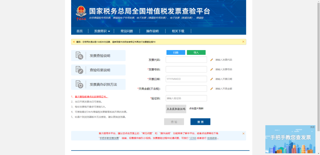 国税局全国增值税发票查验平台:支持增值税专用发票、增值税电子专用发票、电子发票(增值税专用发票)、电子发票(普通发票)、增值税普通发票(折叠票)、增值税普通发票(卷票)、增值税电子普通发票(含收费公路通行费增值税电子普通发票)、机动车销售统一发票、二手车销售统一发票在线查验。