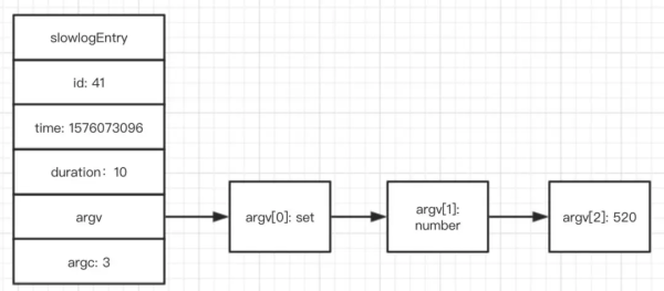 typedef struct slowlogEntry { long long id; time_t time; long long duration; robj **argv; int argc; } slowlogEntry;