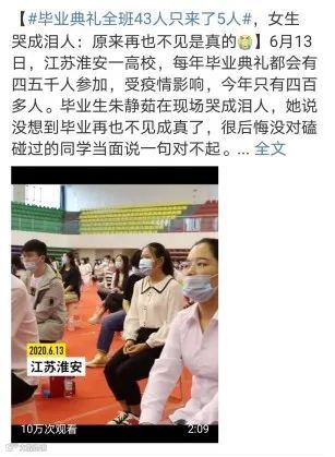 毕业生朱静茹坐在一旁,哭成泪人说,原来再也不见是真的。