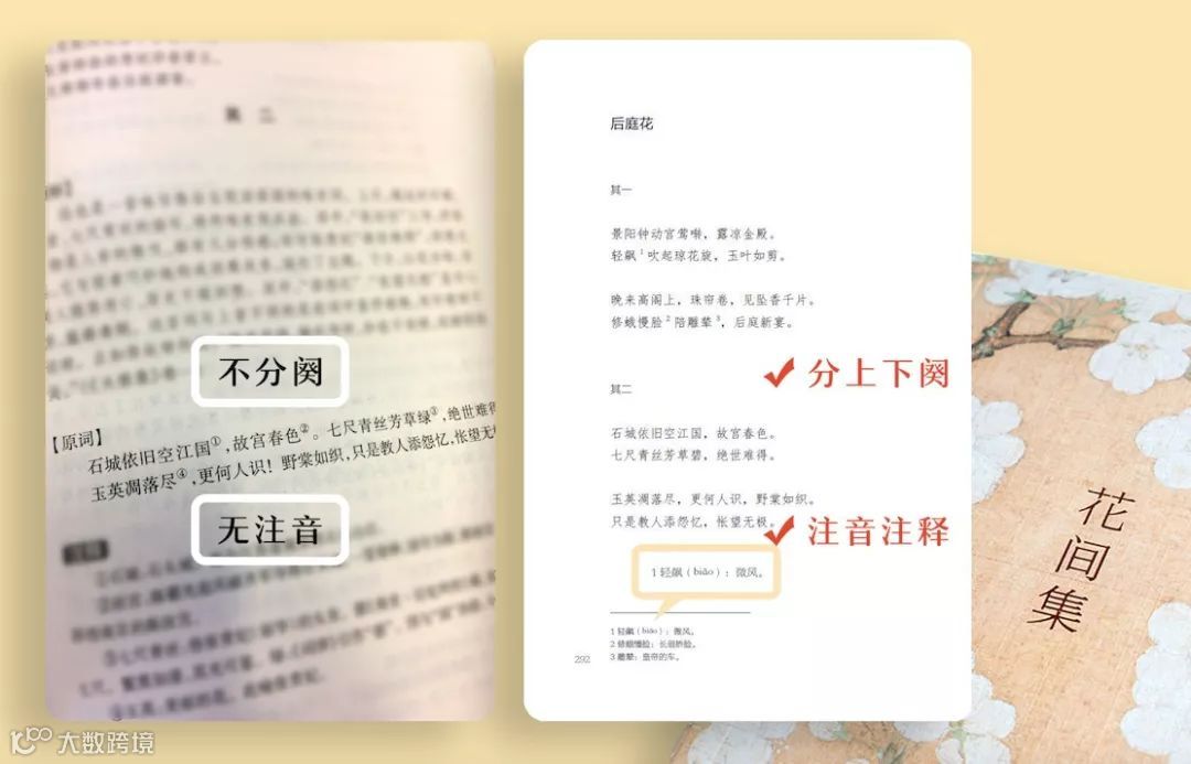 但很多老版本都只注重对词作解释,忽略了音韵。把词句简单堆叠在一起,很难获得韵律之美。